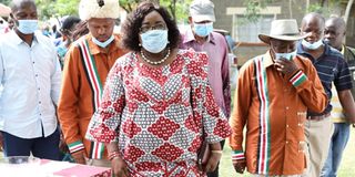 Mama Ida Odinga is pictured with some of the leaders from Mt Kenya, during a meeting with a delegation of about 700, at the family's home in Bondo, Siaya County, on October 10, 2020.