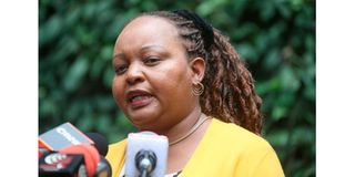 Kirinyaga Governor Ann Waiguru addressing journalists on May 26,2021 at Sarova Panafric Hotel in Nairobi during a Mount Kenya West Governors presser.