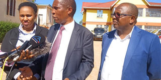 MPs Ruth Mwaniki (Kigumo) Nduati Ngugi (Gatanga) and Peter Kimari (Mathioya) addressing the press at Gatanga Catholic Church in Murang'a County on August 4, 2019. PHOTO | NDUNGU GACHANE | NATION MEDIA GROUP