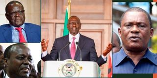 From top left: Former Meru Governor Kiraitu Murung’i, former Embu Senator Lenny Kivuti, President William Ruto and Public Service Cabinet Secretary Justin Muturi.