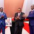 Mwiti Kathaara (left) with DP William Ruto and MC Jessy.