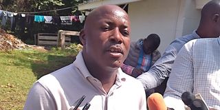 Kisumu Governor aspirant Ken Obura addressing the press in Kisumu on Thursday, March 31.