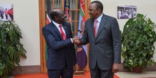 President Uhuru Kenyatta (right) and Dr Mukhisa Kituyi at State House, Nairobi in 2016.