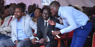 The then DP William Ruto with Kiharu MP Ndindi Nyoro and Gatundu South MP Moses Kuria at a past event.