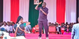Orange Democratic Movement party leader Dr Oburu Oginga addresses youths during the NYOTA business start up capital disbursement at Jomo Kenyatta International Stadium, Kisumu County, on February 2, 2026.