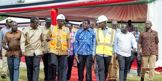 President William Ruto, Siaya Governor James Orengo, Enegry CS Opiyo Wandayi and other senior government officials during the breaking ground for the construction of the Sh1 billion Usenge Pier in Bondo Constituency, Siaya County.