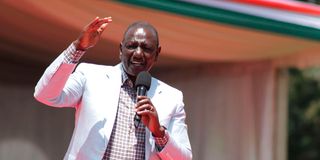 President William Ruto addresses a crowd at Mumias sports complex stadium in Kakamega county on November 7, 2025.