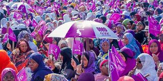President Samia Suluhu Hassan during a campaign rally at Morogoro Province at Tumbaku Stadium, Tanzania, on August 9 2025