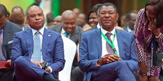 Senate Speaker Amason Kingi (left) and his National Assembly counterpart Moses Wetang'ula during the Africa Climate Summit in Nairobi on March 3, 2025.