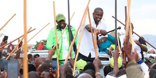 Dr Fred Matiang’i and Rigathi Gachagua during the United Opposition's tour of Kisumu.