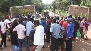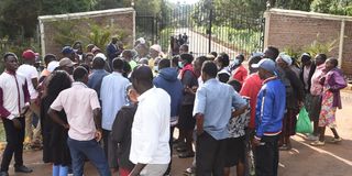 Members of the public stand outside the gate to Deputy President William Ruto's home in Sugoi, Uasin Gishu County after GSU officers were withdrawn and replaced by Administration Police officers on August 26, 2021.