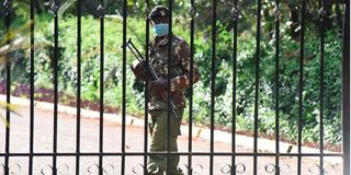 An Administration Police Officer mans the entrance to Deputy President William Ruto’s home in Sugoi, Uasin Gishu County on August 26, 2021.