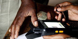 An IEBC official using the voter identification equipment at the Bisil Boarding Primary School polling station in Kajiado. Investigations into the failure of electronic kits during the last General Election have been extended to three foreign countries.