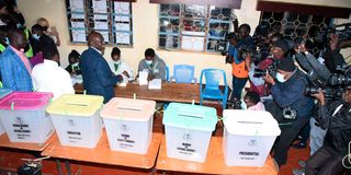 Then deputy president William Ruto prepares to cast his vote at a polling station in Turbo Constituency, Uasin Gishu County on August 9, 2022.