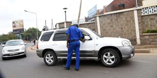 A police officer talking to a motorist near Dayster University in Nairobi on September 20,2020.