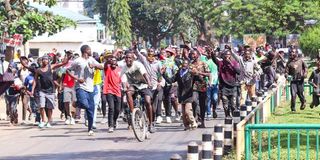 In Eldoret, a police lorry was set ablaze in Huruma area and at least 13 people were hospitalised with injuries after clashing with armed goons. Protesters blocked parts of the busy Eldoret-Uganda highway, transport was paralysed and businesses were shut.