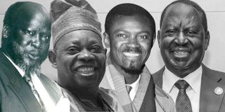 From left: Leaders John Garang, Moshood Abiola, Patrice Lumumba and Raila Odinga.