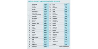 In the Mt Kenya region, Nyeri Governor Mutahi Kahiga (56.5 per cent), Murang’a’s Mwangi Wa Iria (55.5 per cent) and Kirinyaga’s Anne Waiguru (54.4 per cent) are the top performers.