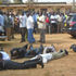A car sprayed with bullets parked at Lang'ata Police Station Nairobi on August 3, 2013. It was being driven by four gangsters who were shot dead by flying squad police officers.