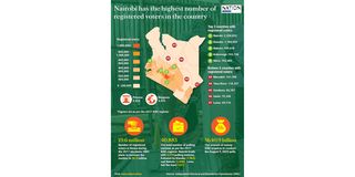 Nairobi and Mombasa counties, where ODM leader Raila Odinga has a huge following, have only registered four and two per cent of targeted voters, respectively. Kitui County, which forms the political base of Wiper leader Kalonzo Musyoka, is also underperforming.