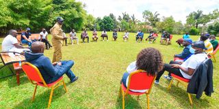 Deputy President William Ruto with members of the creative industry discussing their concerns, receive suggestions and proposals on the current situation in the country at his Karen office, Nairobi.