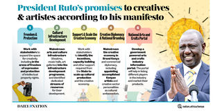 During his presidential campaigns, Mr Ruto courted artistes with grand promises and catchy slogans.