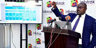Infrotrak Research and Consulting, Research Manager Johvine Wanyingo during a media briefing on September 25, 2025.
