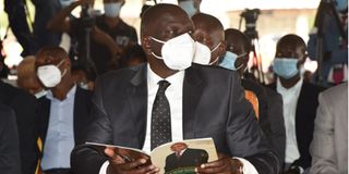 Deputy President William Ruto during the burial ceremony of the late Peter Chomba, MCA for Huruma Ward, Uasin Gishu County Assembly, at Huruma grounds in Eldoret town on October 21, 2020.