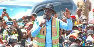 President William Ruto addresses wananchi after inspecting the Limuru Affordable Housing Project in Kiambu County on August 10, 2025.