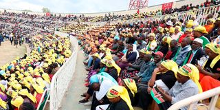 Members of the public follow the proceeding during Jamhuri Day celebrations at Nyayo National Stadium in Nairobi on December 12, 2025.