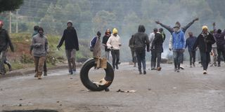 By around 12.30pm, police were still battling rioting youths in Karatina while in Nyeri, the unrest had been momentarily contained.