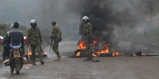 In Maua town, Meru County, some protesters barricaded roads with bonfires and stones as police remained on high alert.