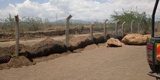 A section of the fence destroyed by invaders at the expansive Kedong Ranch farm on the outskirts of Naivasha.
