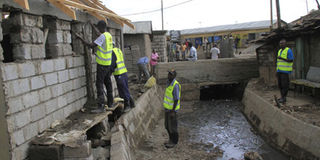 The National Youth Service (NYS) construct modern toilets in Makina, Kibera, on October 17, 2014. The government now seeks to commercialise NYS construction services, among others.
