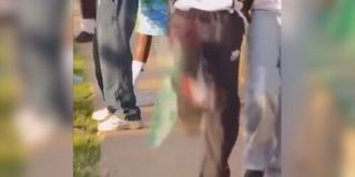 A screengrab of the moment that got a teen in trouble. He is accused of desecrating the Kenyan flag at Nyayo Stadium during a football match between Mogadishu City Club and Police FC.