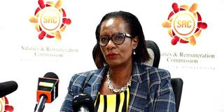 Salaries and Remuneration Commission Chairperson Lyn Mengich briefs journalists in a past event.