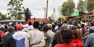 President Uhuru Kenyatta speaks to his supporters at Tumutumu Market on his way to a special service at PCEA Tumutumu, Nyeri County, on October 25, 2020.