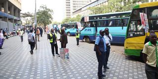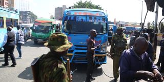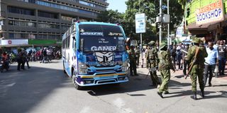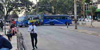 Matatus block Moi Avenue in Nairobi CBD on Monday.
