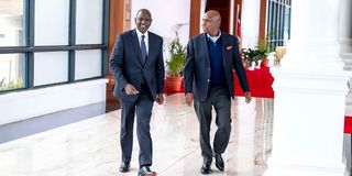 President William Ruto and Kanu chairman Gideon Moi after a meeting at State House, Nairobi, on Thursday.