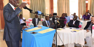 Farmer and veteran politician Jackson Kibor addressing the first Eldoret City Men Congress in Eldoret, Uasin Gishu County on October 21, 2019. PHOTO | JARED NYATAYA | NATION MEDIA GROUP