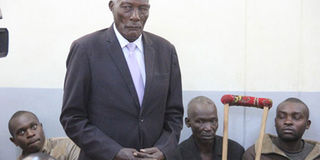 Veteran politician Jackson Kibor appears before an Eldoret court on March 8, 2017. He was charged with drawing a gun and threatening to kill his son Ezekiel Kibor, at his farm in Uasin Gishu County and refusing to have his finger prints taken. PHOTO | JARED NYATAYA | NATION MEDIA GROUP