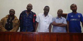 The accused are Peterson Senteu, Theophilas Mwongela, Bernard Maina, Joseph Mbugua, James Ndichu, Wilbrod Omondi, Joel Kabiru, Mugi Nyaga, Moses Wanyama, David Musyoki and Nicholas Muthuku.