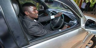 Igembe South MP John Paul Mwirigi in a vehicle President Uhuru Kenyatta bought him on September 15, 2017. PHOTO | PSCU