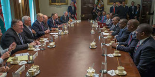 President Uhuru Kenyatta and US President Donald Trump lead their respective delegations in bilateral talks at White House in Washington DC, USA, on August 27, 2018. PHOTO | JOAN PERERUAN | NATION MEDIA GROUP