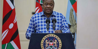 President Uhuru Kenyatta addresses the country concerning the coronavirus outbreak, at State House, Nairobi, on March 25, 2020. PHOTO | PSCU
