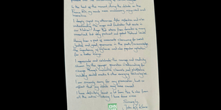 Dagoretti South MP John Kiarie's handwritten apology.)