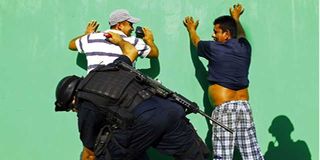 Mexican federal police check men in the streets of Apatzingan, Michoacan State, Mexico. The US has linked Kenyan Elisha Odhiambo Asumo to Mexican grouping called Cartel Jalisco Nueva Generación.