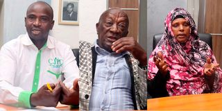 Peter Sakala, chairperson of the Ex-Ranching Employees Self-Help Group in Njiru, Josphat Mutua Mbole, 84, a resident of Ruai, and a former employee of Juja Sisal Farm Limited, and Dabo Liban Boru, whose husband was a former employee of Juja Sisal Farm Limited during an interview at Nation Centre, Nairobi on September 30, 2023.
