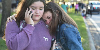 Students react following a shooting at Marjory Stoneman Douglas High School in Parkland, Florida on February 14, 2018. PHOTO | MICHELE EVE SANDBERG | AFP