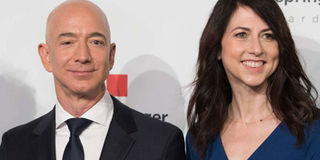 Amazon CEO Jeff Bezos and his wife MacKenzie Bezos at the headquarters of publisher Axel-Springer in Berlin. Jeff announced on January 9, 2019 on Twitter that he and his wife were divorcing after a long separation. FILE PHOTO | JORG CARSTENSEN | DPA | AFP